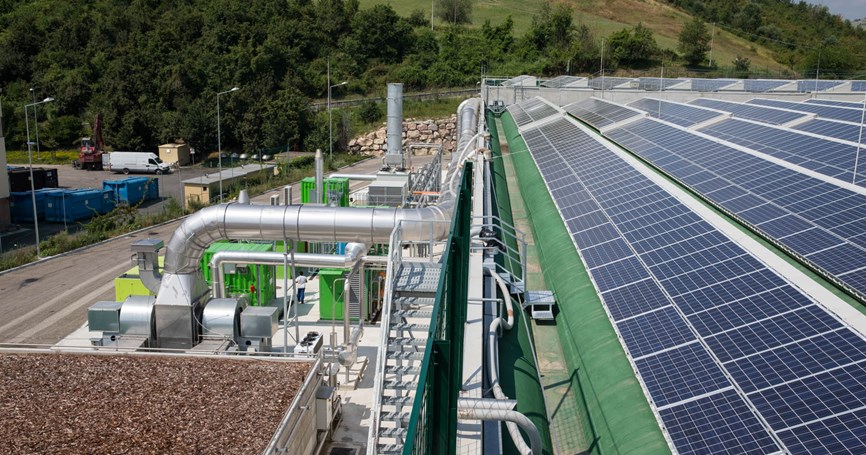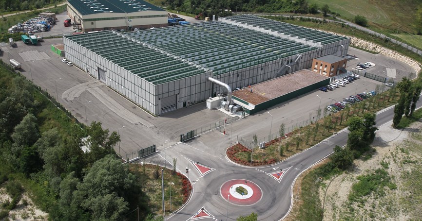 Progettazione e realizzazione di un impianto di stabilizzazione anaerobica e aerobica a secco della frazione organica del rifiuto proveniente dalla RD - Sogliano al Rubicone (FC). l'impianto si aggiunge a quelli del polo di Ginestreto completando la gestione del recupero dei rifiuti secchi e organici e lo smaltimento degli scarti finali nella discarica di servizio.
