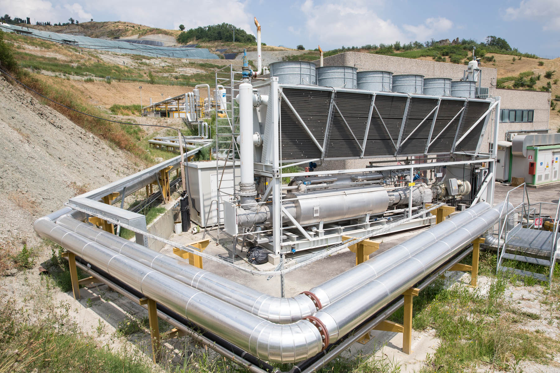 Progettazione e realizzazione dell'impianto per la generazione di energia elettrica per mezzo del recupero fumi di scarico dai motori di cogenerazione di Ginestreto. L'impianto produce energia con il recupero del biogas della discarica di Ginestreto 2